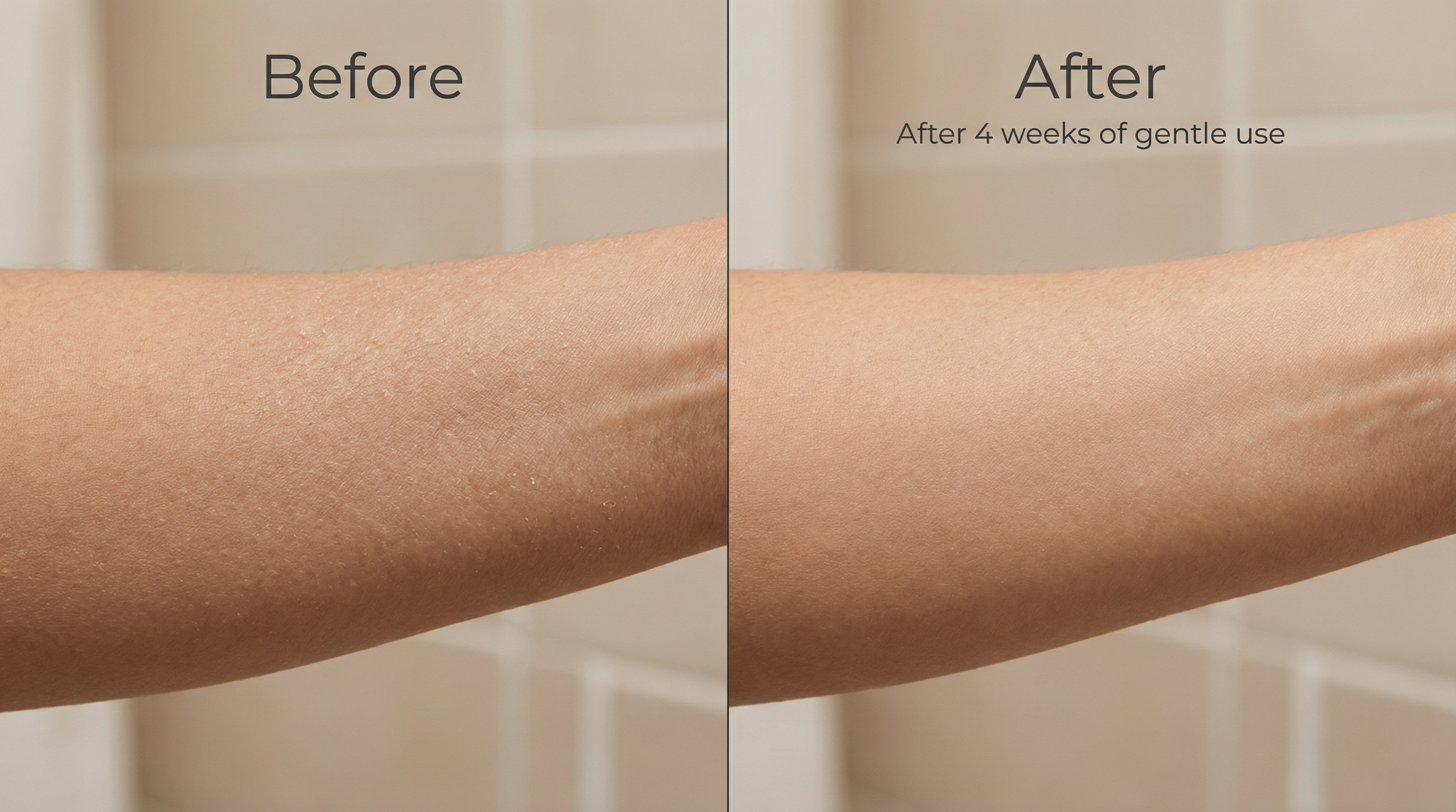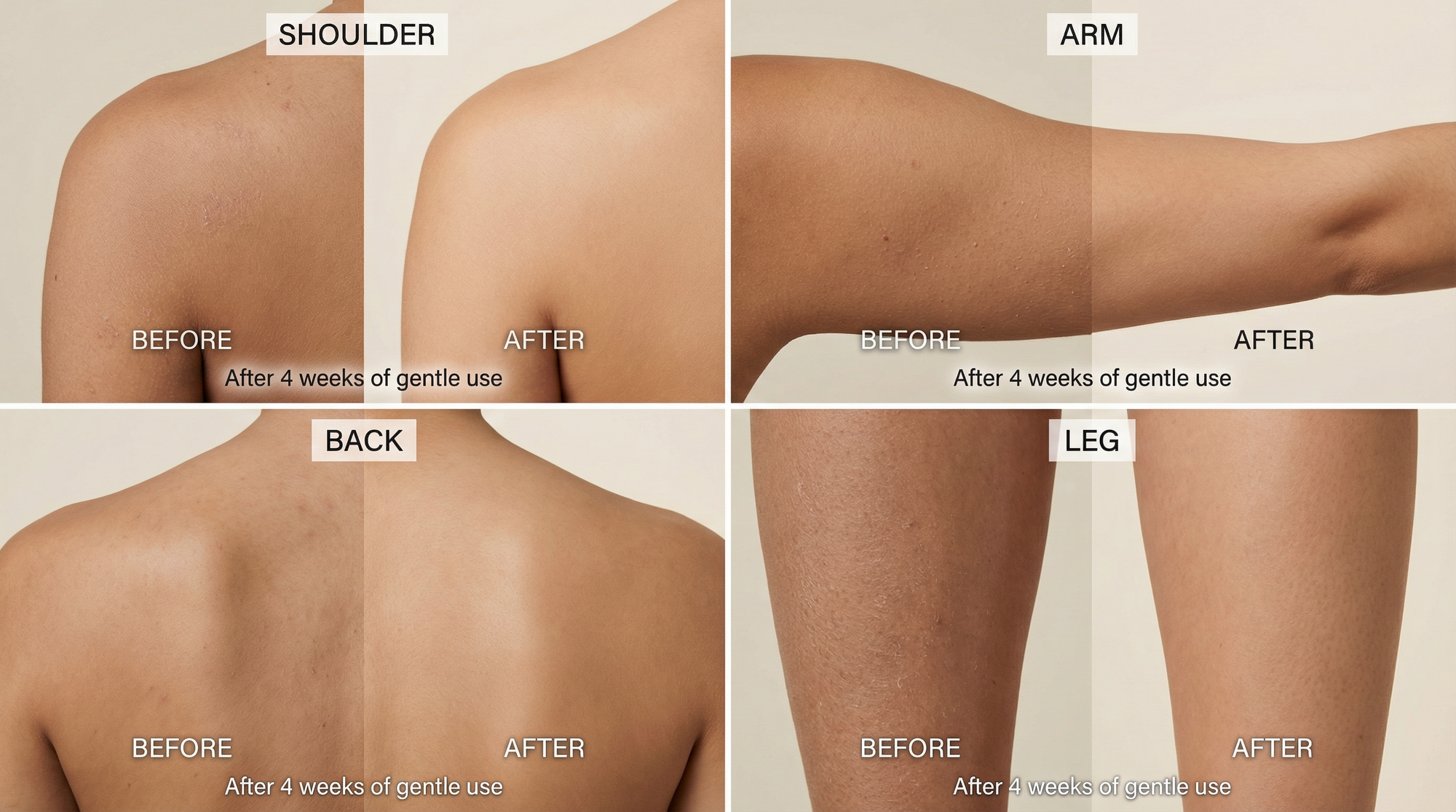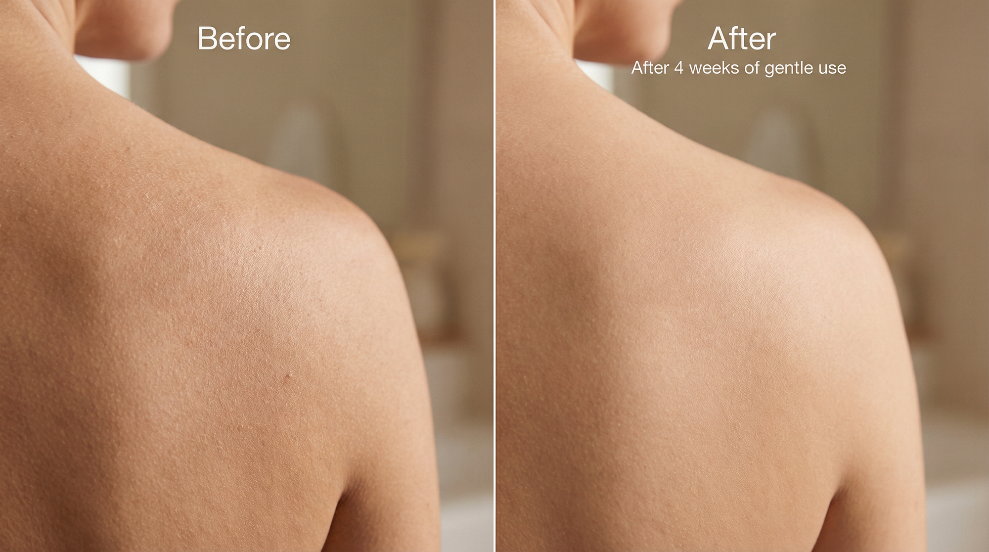 • I have KP and always overdid exfoliation. This felt gentle enough that I finally stuck with it — and my arms feel smoother than they have in years
